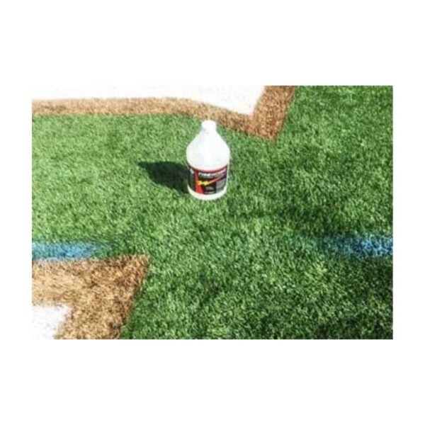 Formulated and manufactured by USSC, this water-based formula is designed to remove unwanted, old paint lines from synthetic artificial field turf. It will not hurt or damage the synthetic turf filaments or the rubber and sand infield filler. As with any chemical please wear protective gear to prevent getting the product or the product splatter on skin or eyes. Wear protective gloves, safety eyes glasses and appropriate shoes when applying or scrubbing the paint with this product. PAINTOFF remover can be used without dilution for maximum strength or can be diluted with 1 to 2 parts of water. Simply pour or spray the remover on the paint that needs to be removed. Let it soak for a few minutes to penetrate and start loosing up the paint. Then apply slight agitation to speed removal. Before the remover paint mixture dries, rinse and flush with water. The unwanted paint should be removed with one good application. For tough, hard to remove paints a second application, scrubbing and rinsing might be necessary.